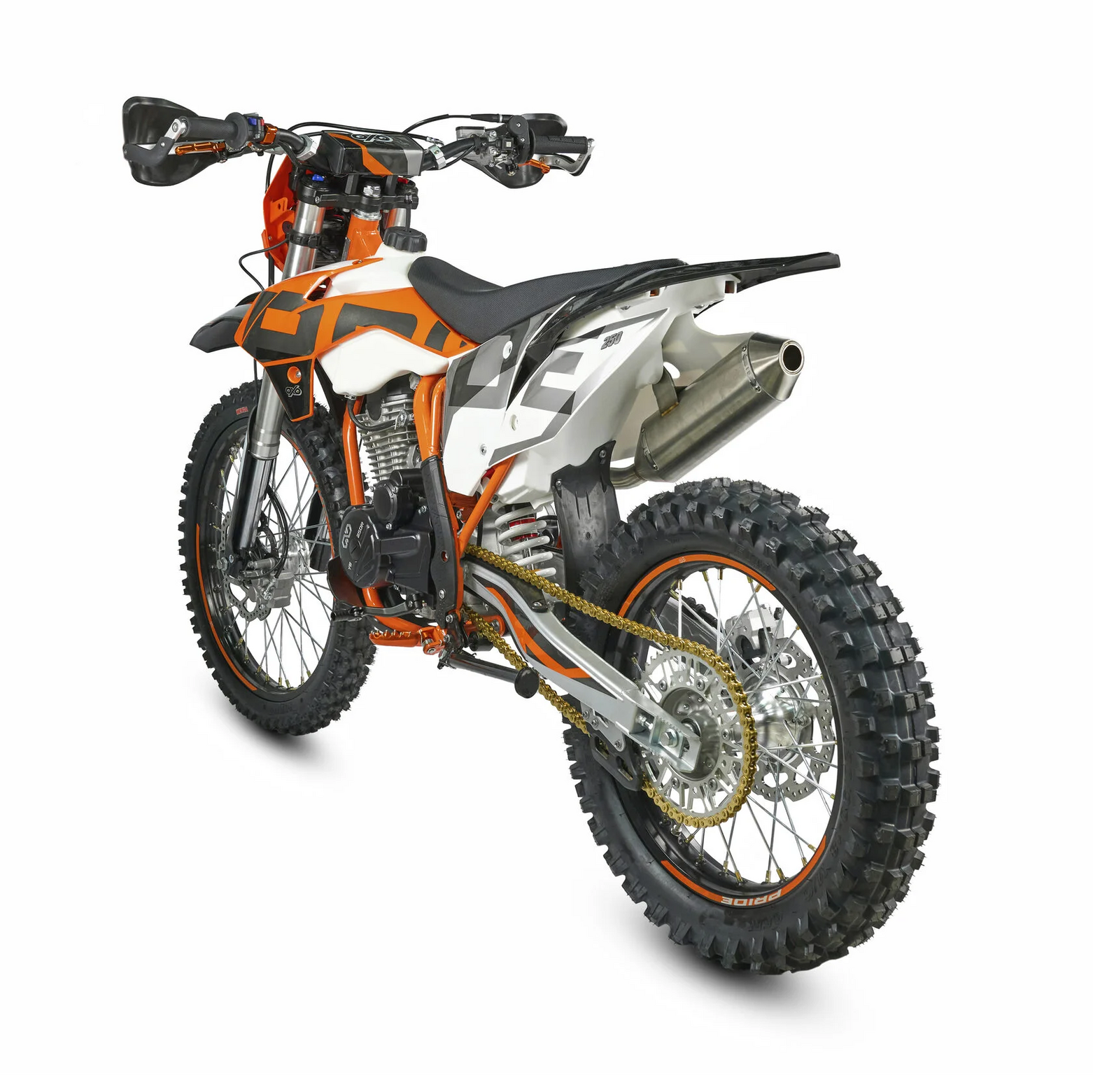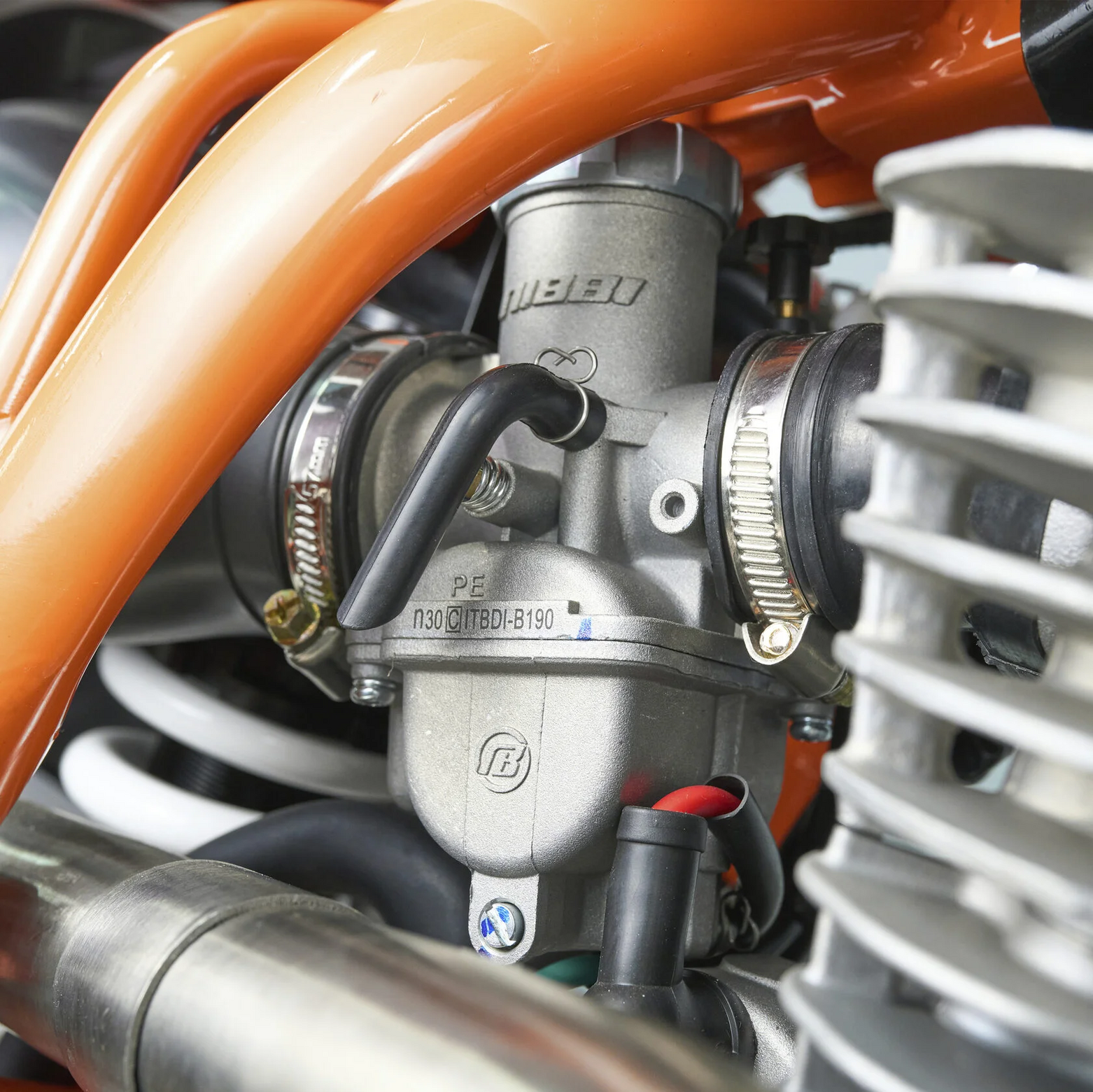 КомплектацияЭлектронная приборная панель, моточасы, подножки «AJ1» (алюминий 6063 с шипами), невозгораемый воздушный фильтр «AJ1» – Twin Air с увеличенной площадью, ведомая звезда «AJ1» (520, алюминий 7075-Т6), защита рук, грипсы OTOM/Lock-On, передние и задние буксаторы «AJ1», откидные алюминиевые рычаги 270, алюминиевая лапка КПП, пульт света КТМ, LED фара 5 линз.ДвигательМодель оснащена 1-цилиндровым 4-х тактным двигателем LONCIN YB250-R с воздушным охлаждением объёмом 249,9 см3, который выдаёт 23 л.с.ПодвескаПередняя вилка "MNT" перевернутого типа 51-54-830/37mm с регулировками. Моноамортизатор "MNT" также с регулировками. Система прогрессии, обеспечивает равномерную, мягкую работу и увеличивает длину рабочего хода подвески. Также ось крепления маятника совпадает с осью крепления ножки. Это существенно улучшает развесовку мотоцикла.КолесаСпереди и сзади установлены антибуксаторы бренда "AJ1", которые притягивают покрышку к ободу, позволяя ездить по бездорожью при низком давлении в камерах, не давая покрышке проворачиваться во время езды. Размер передней покрышки: 80/100 R21. Размер задней покрышки: 120/90-R18. Модель комплектуется "жирной" резиной "KENDA". Все эти характеристики позволяют мотоциклу отлично себя чувствовать в песке и грязи.Тормозная системаПолностью гидравлическая с армированными шлангами. Спереди и сзади установлен двухпоршневой суппорт. Данная конфигурация тормозных механизмов, позволяет быстро и безопасно оттормаживаться даже в самых непростых условиях.Сухой вес мотоцикла 108кг