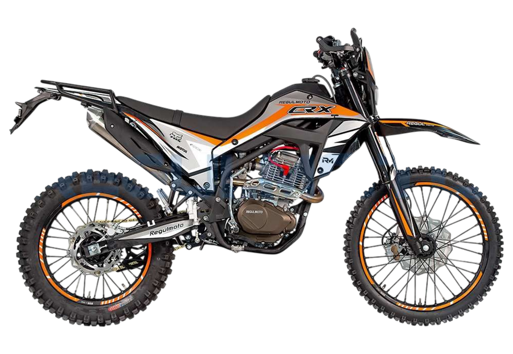 Новинка 2024 года: Мотоцикл Regulmoto CR-X 300Для Regulmoto CR-X 300 нет плохих дорог!Представляем долгожданную новинку 2024 года — мотоцикл Regulmoto CR-X, созданный на базе легендарной Honda CRF300L. Этот мотоцикл оснащен мощным двигателем Zongshen PR300 с двумя клапанами на цилиндр и карбюратором Nibbi Racing PE30, что обеспечивает отличную производительность и надежность.Подвеска и управление:• Передние амортизаторы с регулировкой и зеркалом 41 мм для точной настройки под любые дорожные условия.