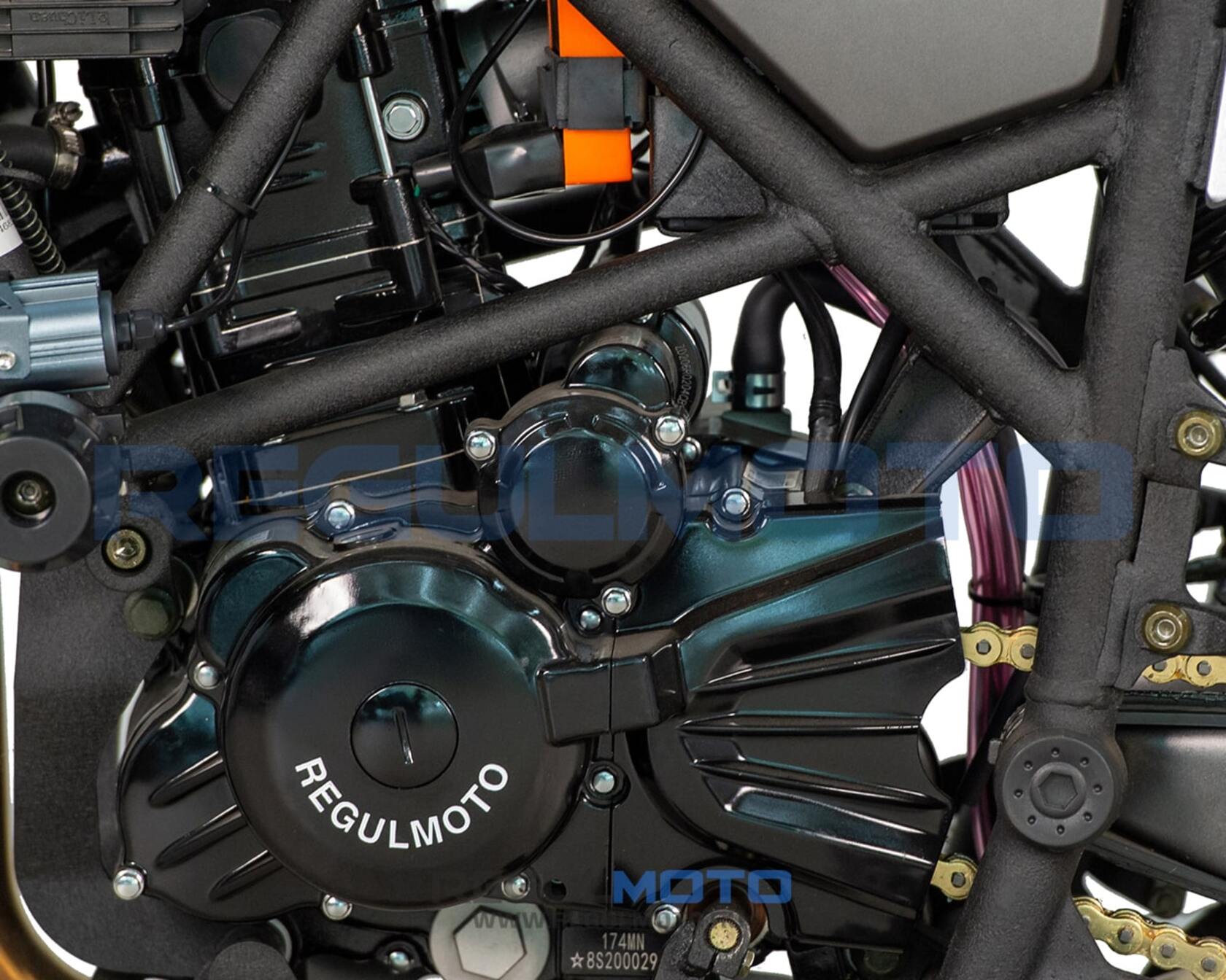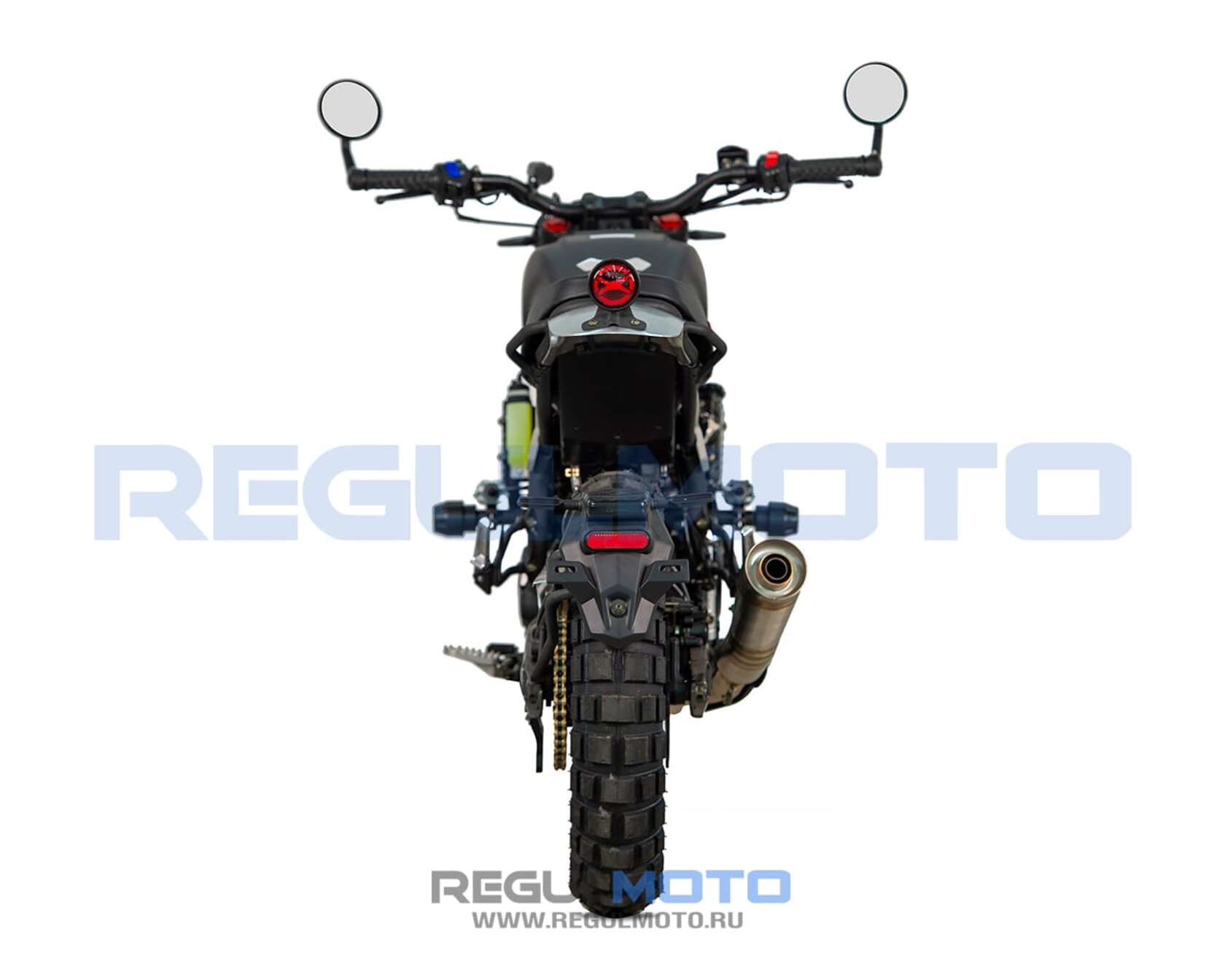 Regulmoto Fargo 300 новинка 2024 года!УправлениеУдобная прямая посадка позволяет как неспешно передвигаться, любуясь пейзажами, так и маневрировать на бездорожье или в городском потоке. Байк отличается послушностью, а тормоза обеспечивают замедление с любой скорости.Колеса и подвескаПередняя перевернутая вилка мягкая и плавная. Это позволяет преодолевать с комфортом даже самые «убитые» дороги. Задний моноамортизатор обеспечивает стабильность на бездорожье и в труднопроходимых местах.Колеса на Fargo 300 имеют эффектный внешний вид. Широкие шины с выраженным шипом обеспечивают отличное сцепление с любой поверхностью, а спицованные диски защищают байк от загрязнения и выхода из строя.ДвигательВ версии Regulmoto Fargo 300 используется двигатель от известного производителя Zongshen 174MM (CBS300) с водяным охлаждением и карбюратором Nibbi Racing PWK 34. Объединяя инновационные технологии и высокую производительность, он обеспечивает отличную динамику, экономичность и долговечность, делая каждую поездку ещё более впечатляющей.РамаРама Regulmoto Fargo 300 имеет классическую компоновку. Сварная штампованно-трубчатая конструкция имеет выверенный баланс между весом и жесткостью, что позволяет раме выдерживать высокие нагрузки и оставаться легкой.КППКороткие передачи 6-ступенчатой КПП хорошо зарекомендовали себя на бездорожье. Вместе с эластичным мотором они позволяют ровно двигаться без выкручивания газа до упора, а жидкостный радиатор охлаждения защищает мотор от перегрева.Regulmoto Fargo 300 — редкий случай, когда в одном мотоцикле идеально сочетается стиль и функциональность. Это настоящий скремблер — мотоцикл, построенный на базе лёгкого городского байка, приспособленного к передвижению вне дорог за счёт установки более длинноходных подвесок и внедорожных шин.При этом мотоцикл отлично вписывается в городской пейзаж, с лёгкостью преодолевает пробки, а за его пределами позволяет срезать путь, прохватив по грунтовкам.