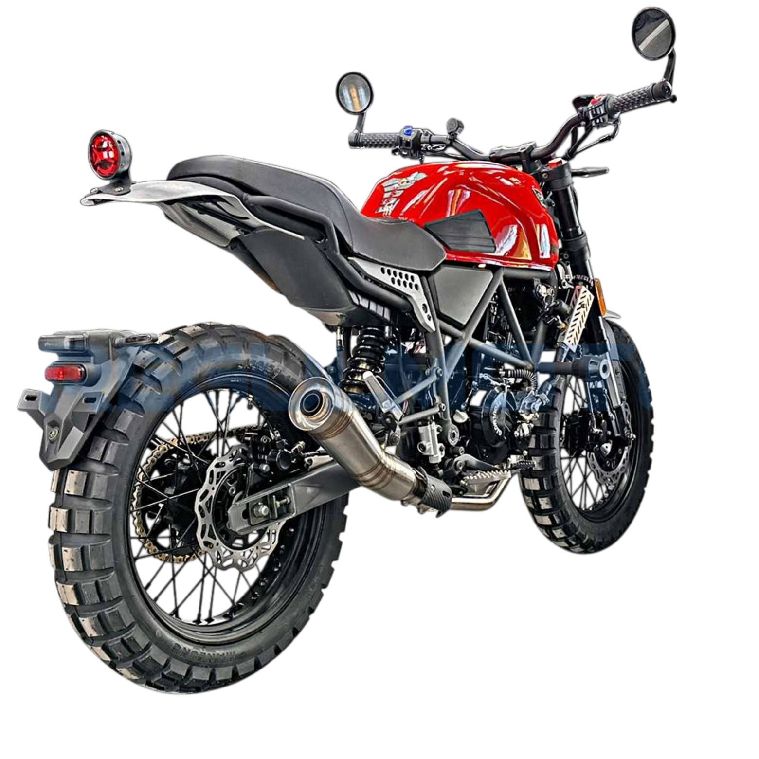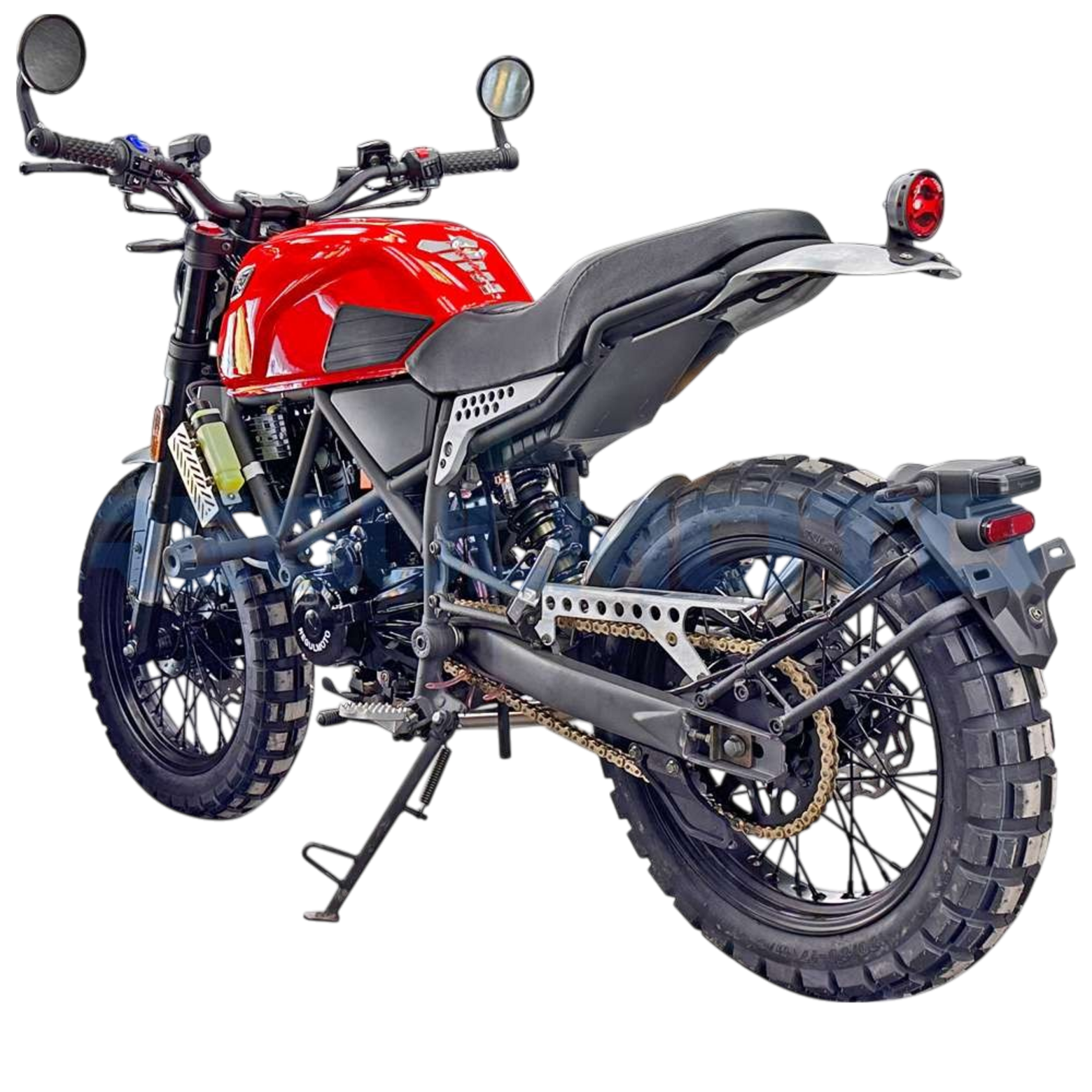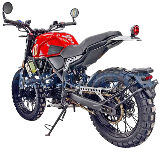 Regulmoto Fargo 300 новинка 2024 года!УправлениеУдобная прямая посадка позволяет как неспешно передвигаться, любуясь пейзажами, так и маневрировать на бездорожье или в городском потоке. Байк отличается послушностью, а тормоза обеспечивают замедление с любой скорости.Колеса и подвескаПередняя перевернутая вилка мягкая и плавная. Это позволяет преодолевать с комфортом даже самые «убитые» дороги. Задний моноамортизатор обеспечивает стабильность на бездорожье и в труднопроходимых местах.Колеса на Fargo 300 имеют эффектный внешний вид. Широкие шины с выраженным шипом обеспечивают отличное сцепление с любой поверхностью, а спицованные диски защищают байк от загрязнения и выхода из строя.ДвигательВ версии Regulmoto Fargo 300 используется двигатель от известного производителя Zongshen 174MM (CBS300) с водяным охлаждением и карбюратором Nibbi Racing PWK 34. Объединяя инновационные технологии и высокую производительность, он обеспечивает отличную динамику, экономичность и долговечность, делая каждую поездку ещё более впечатляющей.РамаРама Regulmoto Fargo 300 имеет классическую компоновку. Сварная штампованно-трубчатая конструкция имеет выверенный баланс между весом и жесткостью, что позволяет раме выдерживать высокие нагрузки и оставаться легкой.КППКороткие передачи 6-ступенчатой КПП хорошо зарекомендовали себя на бездорожье. Вместе с эластичным мотором они позволяют ровно двигаться без выкручивания газа до упора, а жидкостный радиатор охлаждения защищает мотор от перегрева.Regulmoto Fargo 300 — редкий случай, когда в одном мотоцикле идеально сочетается стиль и функциональность. Это настоящий скремблер — мотоцикл, построенный на базе лёгкого городского байка, приспособленного к передвижению вне дорог за счёт установки более длинноходных подвесок и внедорожных шин.При этом мотоцикл отлично вписывается в городской пейзаж, с лёгкостью преодолевает пробки, а за его пределами позволяет срезать путь, прохватив по грунтовкам.