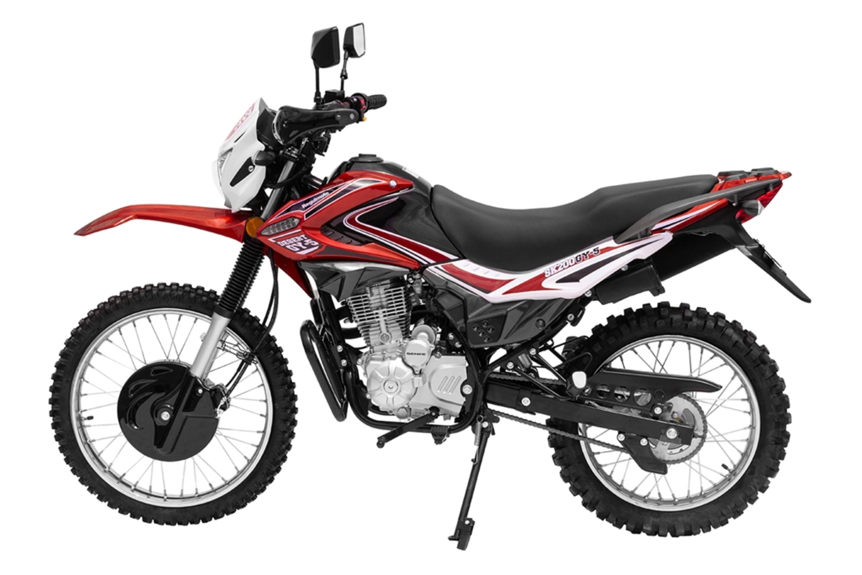 Regulmoto SK 200GY-5 – мотоцикл двойного назначения, созданный для эксплуатации как на дорогах общего пользования, так и на легком бездорожье. Топовая модель линейки лайт-эндуро мототехники известного китайского производителя Senke отличается высокой надежностью повседневной эксплуатации, отсутствием сложностей в сервисном обслуживании, простотой и легкостью управления.В надежной раме с защитными дугами Regulmoto SK 200GY-5 установлен 4-тактный одноцилиндровый двигатель с рабочим объемов в 20 см3, демонстрирующий максимальную мощность в 13.6 л.с. Мотор с воздушным охлаждением, в котором можно без труда признать реплику двигателя известного японского производителя, оснащается балансировочным валом, что позволяет избавиться от излишней вибрации.Подвеска мотоцикла на колесах 21/18 дюймов со стальными ободьями представлена телескопической вилкой-перевертышем спереди, перья которой закрыты защитой, и стальным маятником с моноамортизатором сзади. Тормоза у мотоцикла дисковые, спереди установлен 4-поршневой суппорт, сзади – 2-поршневой.Оснащение Regulmoto SK 200GY-5 соответствует возлагаемым на мотоцикл эксплуатационным задачам: на байке вполне комфортно передвигаться по дорогам и легкому бездорожью, чему способствуют достаточно большой ход амортизаторов, защита цепи, пластиковая защита рук. Среди установленного оборудования присутствуют: аналоговая приборная панель, замок зажигания с защитой от попадания песка и пыли, полный комплект светового оборудования с дополнительными светодиодными поворотниками, встроенными в боковые обтекатели, зеркала заднего вида, стояночная и центральная подножки.Данная модель мотоцикла присутствует на отечественном рынке мототехники уже достаточно длительное время, за которое мотоцикл зарекомендовал себя легким в эксплуатации и неприхотливым в обслуживании аппаратом. О высокой надежности мотоцикла говорят солидный километраж пробегов при отсутствии серьезных неисправностей и позитивные отзывы обладателей Regulmoto SK 200GY-5.У нас Вы можете купить этот мотоцикл с бесплатной доставкой по РФ и гарантией до года. Также его можно приобрести в рассрочку или в кредит.