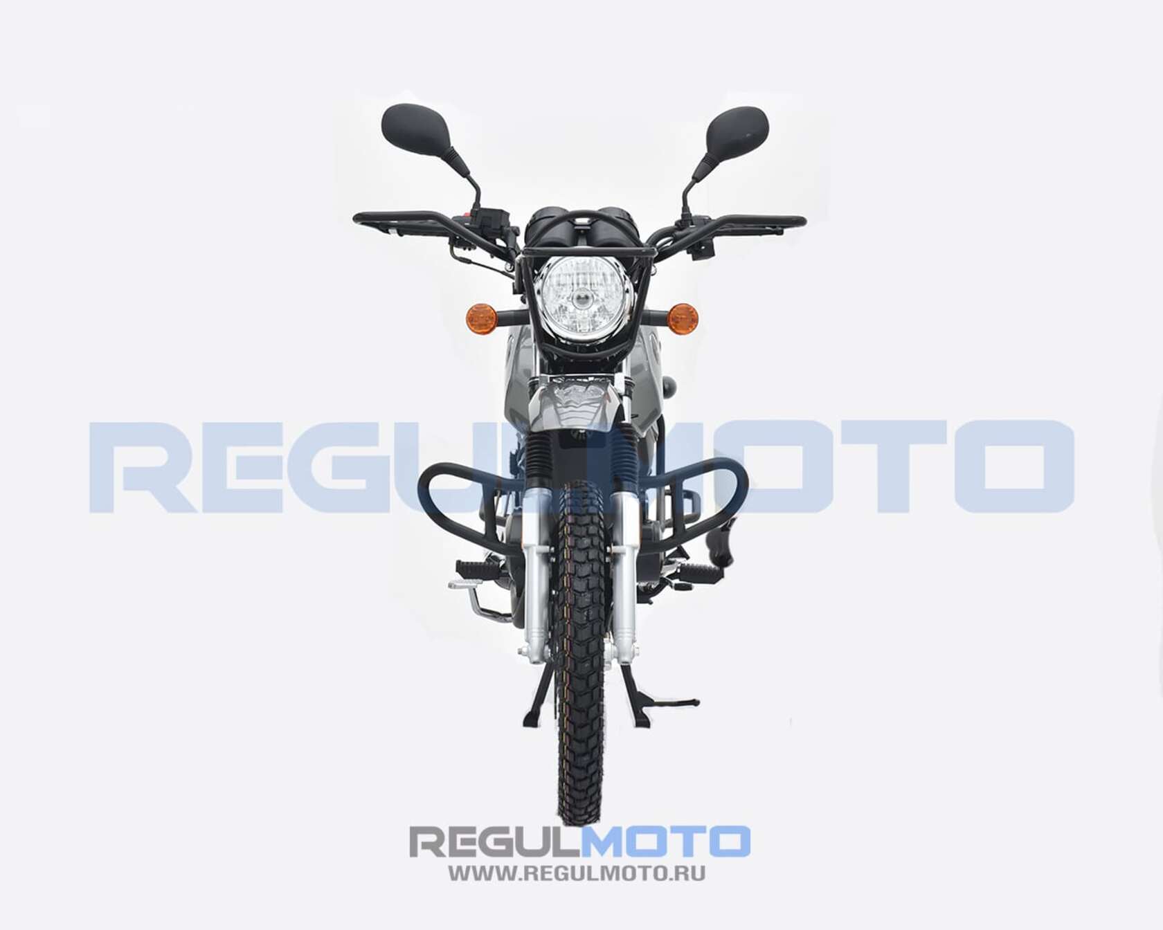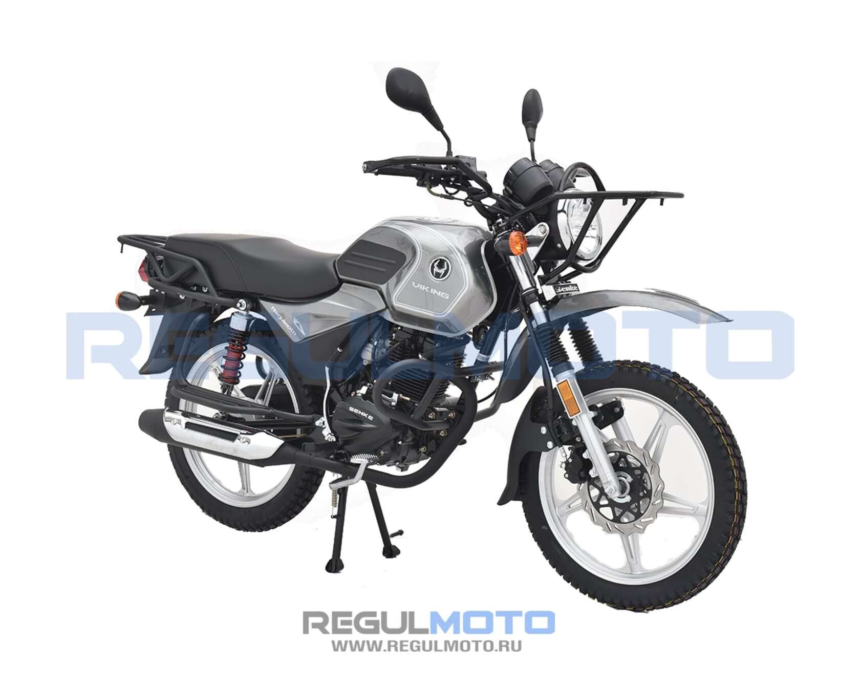 Компания «Regulmoto» представляет вниманию поклонников двухколесной мототехники мотоцикл Regulmoto VIKING – надежный и доступный для многих байк с широкими эксплуатационными возможностями. Мотоцикл Regulmoto VIKING – один из ярких представителей линейки малокубатурной мототехники известного азиатского производителя Senke. Мотоциклы производства одного из крупнейших китайских концернов пользуются заслуженным признанием экспертов и мотолюбителей в различных частях света, включая Европу и Америку. Продукцию Senke отличают не только одно из лучших на рынке соотношений достойного качества и демократичной цены, но и солидный эксплуатационный ресурс, высокая надежность, простое и недорогое сервисное обслуживание.В раме мотоцикла с 18-дюймовыми колесами на литых дисках установлен 4-тактный 150-«кубовый» двигатель с воздушным охлаждением, который способен развивать максимальную мощность в 11,6 лошадиных сил. Наличие у двигателя балансирного вала способствует снижению вибрации при работе мотора. 5-ступенчатая трансмиссия, электростартер, полноценная подвеска, представленная телескопической вилкой спереди и двумя амортизаторами и маятником сзади, приборная панель и емкий топливный бак – все это позволит получать максимум удовольствия от поездки. За безопасность использования мотоцикла отвечают надежная тормозная система (дисковый тормоз спереди и барабанный сзади), комплект светового оборудования и зеркал заднего вида.
