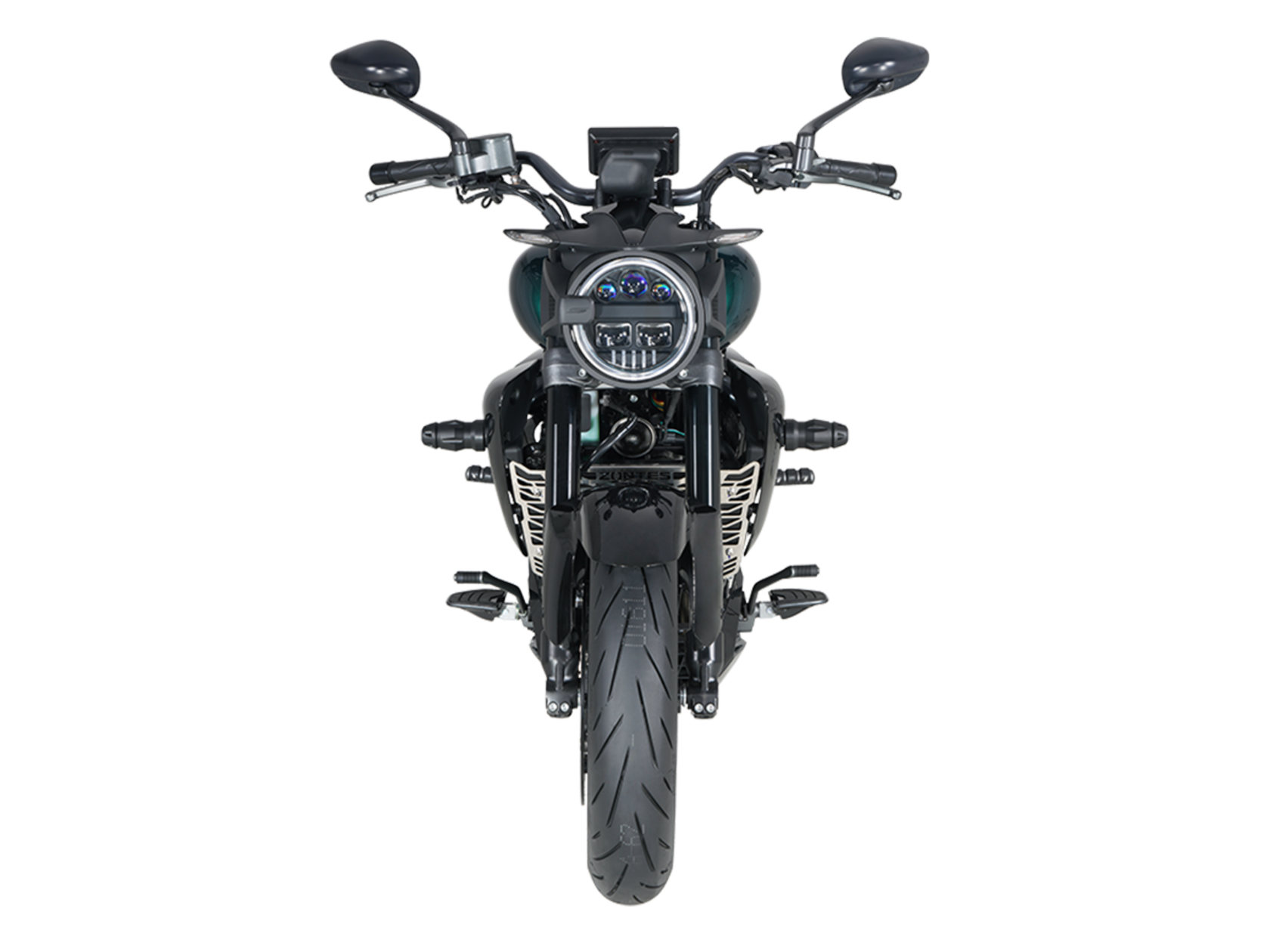 Мотоцикл ZONTES ZT350-S – лёгкий круизёр со стремительным и современным дизайном. Хорошо подходит как для повседневных поездок по городу, так и для покорения дальних маршрутов.Силовая установка представлена одноцилиндровым 4-тактным двигателем ZT184MP с 4 клапанами и 2 верхними распредвалами. Двигатель имеет объём 348 см³ и обеспечивает мощность в 39 л.с. Оснащён инжектором BOSCH и системой жидкостного охлаждения. Механическая коробка передач имеет 6 ступеней и схему 1-N-2-3-4-5-6. Запуск двигателя осуществляется с помощью бесключевого доступа.Ёмкость топливного бака 16 литров.Колёса представлены литыми алюминиевыми дисками диаметром 17 дюймов. На мотоцикл установлены датчики давления в шинах, показатели от которых выводятся на приборную панель. Для подвески спереди используется телескопическая вилка, сзади – моноамортизатор. Гидравлические дисковые тормоза произведены испанской компанией J.JUAN, входящей в холдинг BREMBO.Для освещения используется яркая LED-оптика, а приборная панель представлена цифровым дисплеем. Рычаги тормоза, сцепления и лапки КПП можно отрегулировать. Имеется 2 USB-порта.Габариты мотоцикла 2080х860х1150 мм. Колёсная база 1430 мм. Высота по седлу 750 мм. Вес 176 кг.