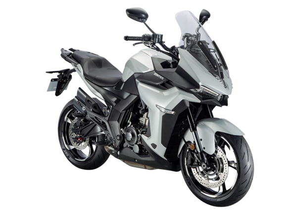 Мотоцикл ZONTES ZT350-X – турист со стремительным современным дизайном. Хорошо подходит как для повседневных поездок по городу, так и для покорения дальних маршрутов.Силовая установка представлена одноцилиндровым 4-тактным двигателем ZT184MP с 4 клапанами и 2 верхними распредвалами. Двигатель имеет объём 348 см³ и обеспечивает мощность в 39 л.с. Оснащён инжектором BOSCH и системой жидкостного охлаждения. Механическая коробка передач имеет 6 ступеней и схему 1-N-2-3-4-5-6. Запуск двигателя осуществляется с помощью бесключевого доступа.Ёмкость топливного бака 19 литров.Колёса представлены литыми алюминиевыми дисками диаметром 17 дюймов. На мотоцикл установлены датчики давления в шинах, показатели от которых выводятся на приборную панель. Для подвески спереди используется телескопическая вилка, сзади – моноамортизатор. Гидравлические дисковые тормоза произведены испанской компанией J.JUAN, входящей в холдинг BREMBO.Для освещения используется яркая LED-оптика, а приборная панель представлена цифровым дисплеем. Имеется 2 USB-порта.Габариты мотоцикла 2055х795х1330 мм. Колёсная база 1380 мм. Высота по седлу 795 мм. Вес 169 кг.