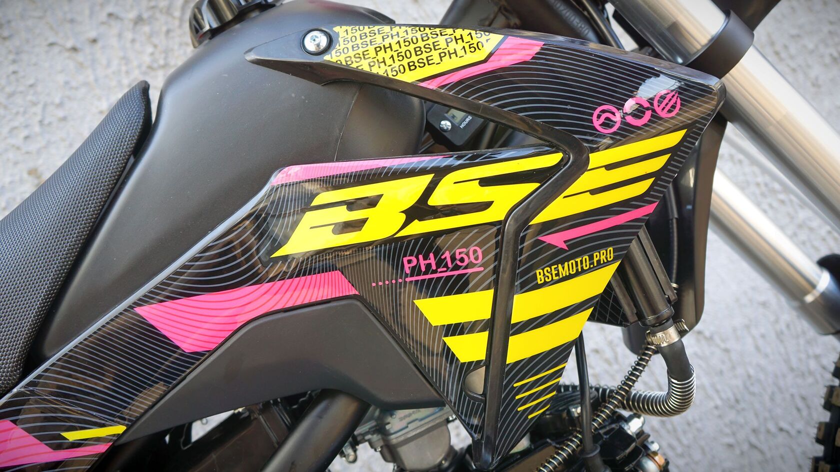 BSE PH150 – король питбайков в линейке BSE.PH150 на колесах 17/14 оснащен самым мощным двигателем среди питбайков BSE и самой богатой комплектацией.Основа PH150 - рама из хромомолибденовой стали повышенной жесткости с литыми усилителями — фирменный знак качества завода BOSUER! Силовая установка питбайка — надежный и тяговитый 4-тактным двигателем YX объёмом 150 см3 с воздушным охлаждением. Максимальная мощность – внушительные 15 л.с. Питает мотор карбюратор MIKUNI VM26. Питбайк оснащен 4-ступенчатой механической трансмиссией. Запуск мотора осуществляется при помощи электростартера или кик-стартера. Подвески с большими ходами: передняя — телескопическая вилка перевёрнуто типа, задняя — моноамортизатор.LED фара головного света, "злая" резина, мощная тормозная система HSK Racing, японские колесные подшипники NTN, защита мотора, руль ProTaper - питбайк полностью укомплектован всем необходимым для покатушек и гонок.PH150 – профессиональный выбор самого продвинутого "питбайкера".