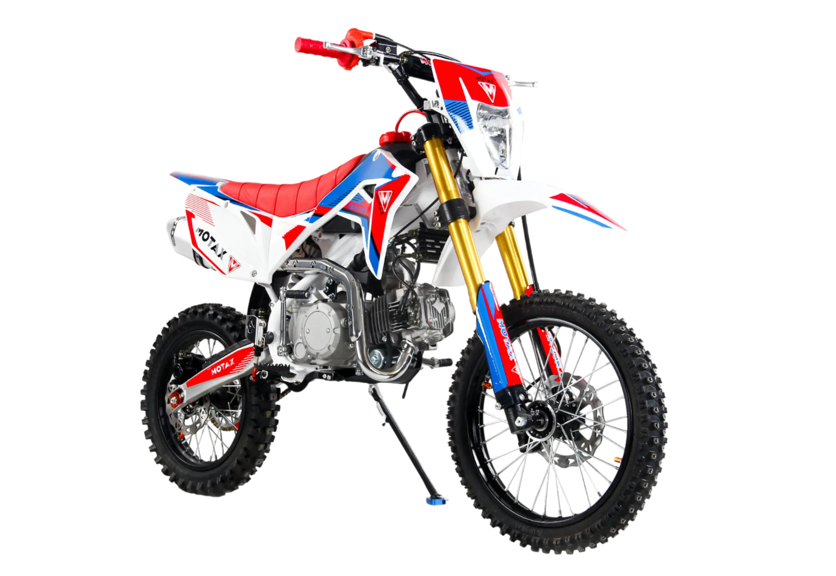 Взрослый бензиновый питбайк MOTAX MX 140 (17/14) оснащен четырехтактным бензиновым двигателем 1P56FMJ с верхним распределительным валом и масляным охлаждением, имеющим два клапана на цилиндр, что обеспечивает стабильную работу и длительный срок службы.