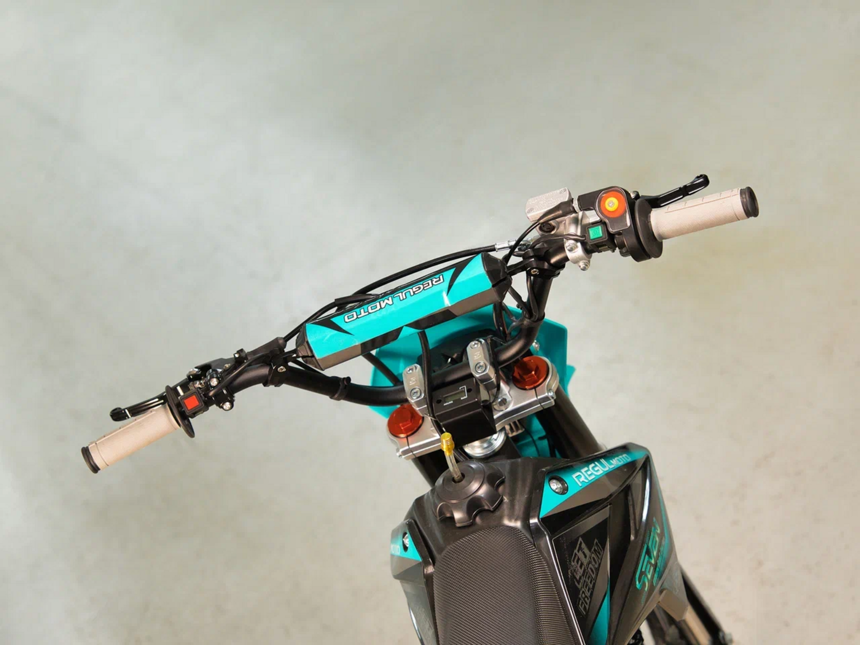 .Regulmoto SEVEN PRO на колесах 17/14 дюймов – обновлённая модель популярного питбайка для активного отдыха и спортивных развлечений. Этот мини-мотоцикл поможет своему владельцу получить или усовершенствовать навыки управления внедорожной мототехникой, и станет надежным напарником в поездках по любому бездорожью.За подготовку топлива у свежей модификации питбайка отвечает карбюратор Nibbi PE19 производства известного бренда спортивных компонентов Nibbi Racing. Среди других обновлений модели: новый пластик "Betta", качественные амортизаторы бренда KKE, модульная LED-фара с четырьмя сверх яркими светодиодами, светодиодный стоп-сигнал, регулируемые подножки, высокий толстостенный алюминиевый руль ProTaper EVO с перемычкой и регулировкой вылета, а также двухкомпонентные серо-черные грипсы.В числе стоковых комплектующих и компонентов питбайка Regulmoto SEVEN PRO необходимо отметить:• усиленные ободья колес из алюминия марки 7116;