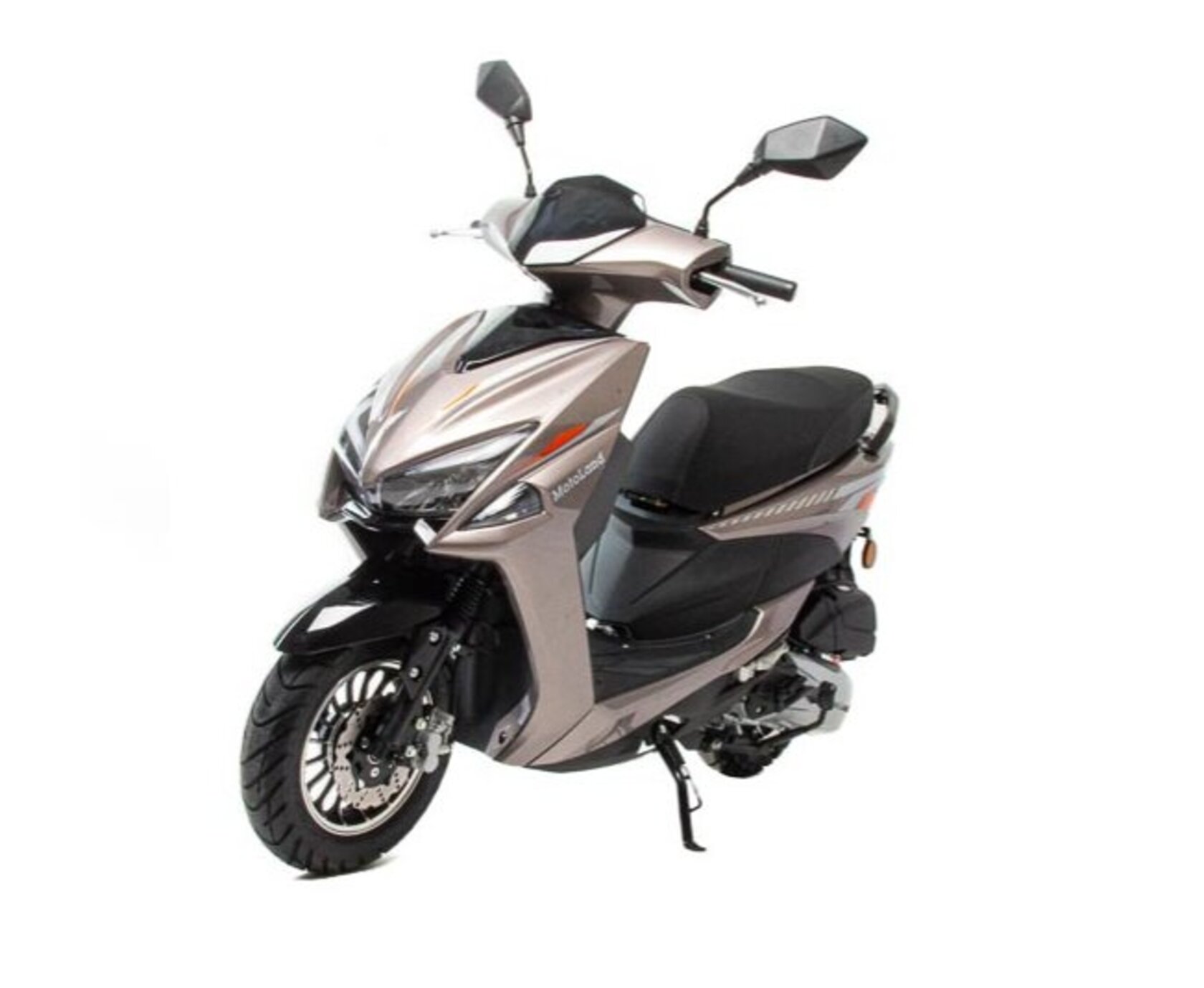 Представляем Вашему вниманию мощную модель скутера MotoLand FС 150.Эта модель выделяется рядом отличительных особенностей, высоким качеством, легкостью в обслуживании и продолжительным сроком службы.Установленная резина позволяет ездить не только по асфальту, но и по грунтовым дорогам. Двигатель с принудительным воздушным охлаждением, не перегревается даже в сильную жару.На скутере установлен бензиновый одноцилиндровый четырехтактный двигатель 157 QMJ, мощностью 10 л/с и рабочим объемом 150 см3. Этот четырехтактный сильный агрегат очень достойного качества, показывает большую надежность, тяговитость и экологичность.Скутер оборудован вариатором и не нуждаются в каких либо манипуляциях с переключением скоростей. Это очень удобно при эксплуатации и не вызывает сложностей, просто сел, повернул ручку газа и поехал. Подвеска - передняя вилка телескопическая и два задних амортизатора. Приборная панель — электромеханическая. Передний тормоз — дисковый, задний — барабанный. Колесные диски литые алюминевые, на которые установлены качественные покрышки 130/60-13". Выдерживает нагрузку до 150 кг, что позволяет без труда передвигаться с пассажиром.Под сиденьем есть багажное отделение, имеются зеркала заднего вида, боковая подножка, АКБ. Система запуска кикстартер + электростартер. Система подачи топлива карбюратор. Объем топливного бака 5 л. Габариты: 1680 х 640 х 920 мм. (без учета зеркал)