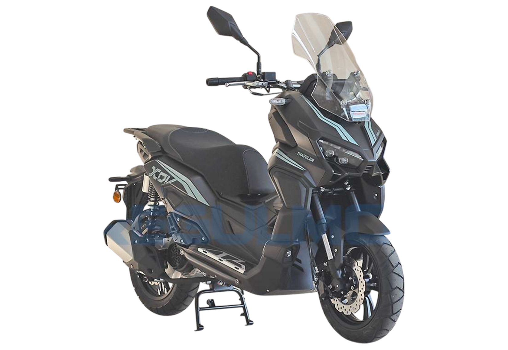 . Максискутер Regulmoto XDV TRAVELER - ваш идеальный спутник по дорогам. Этот полноценный двухместный максискутер с двигателем объемом 175сс представляет надежность и высокую проходимость. Ведь его двигатель известен своей неприхотливостью и способностью проехать более 50000 км без каких-либо поломок.Амортизаторы этого максискутера не оставят вас равнодушными. Перевернутые передние амортизаторы с ходом 90мм, специально адаптированные для Российских дорог, гарантируют комфортную поездку. Два задних амортизатора Nitrogen с ходом 65мм дополняют картину максимальной плавности на дороге.Неприступный стиль этого максискутера подчеркивают алюминиевые диски и стильные детали. Дисковые передние и задние тормоза с системой Сombi Break обеспечивают максимальную безопасность и эффективность торможения.Технологически продвинутый большой TFT дисплей Regulmoto XDV TRAVELER обеспечивает отличную видимость даже в самые яркие дни и ночи. Под сиденьем этого максискутера находится просторное место для шлема, так что вы сможете всегда иметь его под рукой. Алюминиевый багажник под кофр позволит вам везти все необходимые вещи с собой.Комфорт - это одна из главных особенностей Regulmoto XDV TRAVELER. Регулируемое в трех положениях высокое лобовое стекло обеспечивает защиту от ветра и осадков, позволяя вам наслаждаться уютной поездкой. Бесключевой доступ, большие зеркала и LED фары делают максискутер еще более удобным и безопасным.Regulmoto XDV TRAVELER - это не просто максискутер, это ваш надежный спутник в путешествиях. С его помощью вы сможете исследовать новые места, наслаждаться скоростью и свободой. LED противотуманные фары, а также LED указатели поворотов и стоп-сигналы обеспечат вас безопасностью и видимостью на дороге.Купите Regulmoto XDV TRAVELER, и вам откроется новое путешествие по дорогам с комфортом, стилем и технологическим совершенством. Сделайте свой выбор и покоряйте дороги с Regulmoto