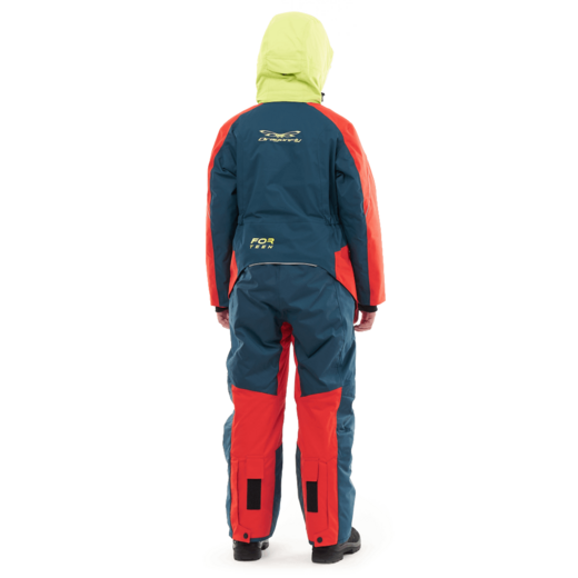 Комбинезон предназначен для снегохода и сноубайка. Надежно защитит от ледяного ветра и мокрого снега. Ткань верха дополнительно содержит тефлоновое водоотталкивающее покрытие. Внешние молнии влагозащитные. Проклеены все швы. На рукавах есть эластичные манжеты, на штанинах снегозащитные юбки с петлёй для фиксации к ботинкам. При закрытой вентиляции и карманах комбинезон герметичен.Функционал комбинезона тщательно продуман и зарекомендовал себя среди снегоходчиков и сноубайкеров. Светоотражающие элементы есть со всех сторон. Семь карманов покрывают все потребности райдера, в том числе для ски-паса, телефона, и теплые, для согревания рук. Есть удобная петля под тангенту рации и кольцо D-ring для ключа горного снегохода. Центральная молнии с тремя замками: открывается сверху и снизу. Несъемный капюшон с двойной утяжкой. Для удобства приема пищи и воды во время стоянки – есть расширения на воротнике, защищает от ветра в расстёгнутом виде. В помещении можно снять верхнюю часть комбинезона и воспользоваться регулируемыми лямками - подтяжками.