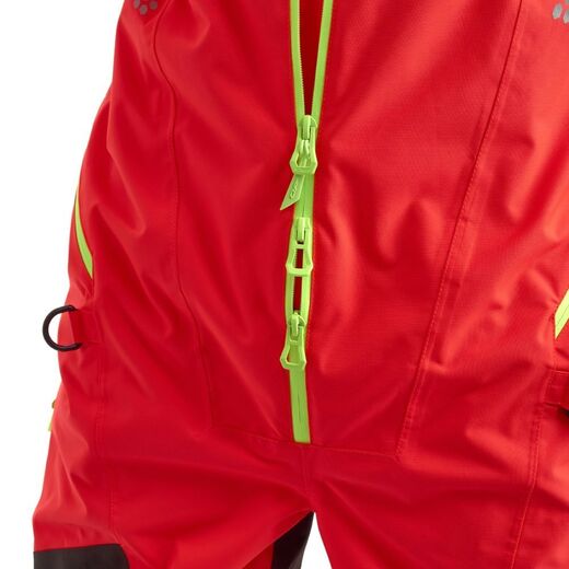 Комбинезон предназначен для снегохода и сноубайка. Надежно защитит от ледяного ветра и мокрого снега. Ткань верха дополнительно содержит тефлоновое водоотталкивающее покрытие. Внешние молнии влагозащитные. Проклеены все швы. На рукавах есть эластичные манжеты, на штанинах снегозащитные юбки с петлёй для фиксации к ботинкам. При закрытой вентиляции и карманах комбинезон герметичен.Функционал комбинезона тщательно продуман и зарекомендовал себя среди снегоходчиков и сноубайкеров. Светоотражающие элементы есть со всех сторон. Семь карманов покрывают все потребности райдера, в том числе для ски-паса, телефона, и теплые, для согревания рук. Есть удобная петля под тангенту рации и кольцо D-ring для ключа горного снегохода. Центральная молнии с тремя замками: открывается сверху и снизу. Несъемный капюшон с двойной утяжкой. Для удобства приема пищи и воды во время стоянки – есть расширения на воротнике, защищает от ветра в расстёгнутом виде. В помещении можно снять верхнюю часть комбинезона и воспользоваться регулируемыми лямками - подтяжками.